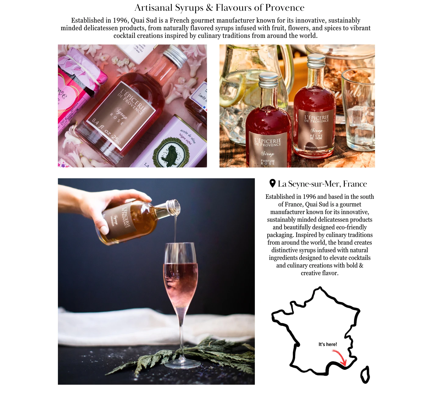 Quai Sud's range of delightful products stems from their burning desire to discover new tastes from culinary traditions around the world. This is evident in the assortment of exotic products they offer, from their array of flavored sugars packed in attractive, brightly colored raffia bags to their delectable variety of syrups for cocktails.