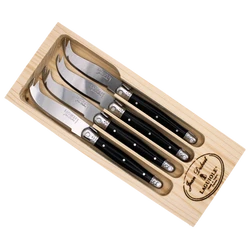 Small in size, but not in strength, these mini cheese knives will slice through even the toughest cheeses with ease. With their mineral colored handles, they will add a beautiful light coloring to your appetizer plate. Each knife goes through 25 production processes, is rust resistant, and is dishwasher safe.